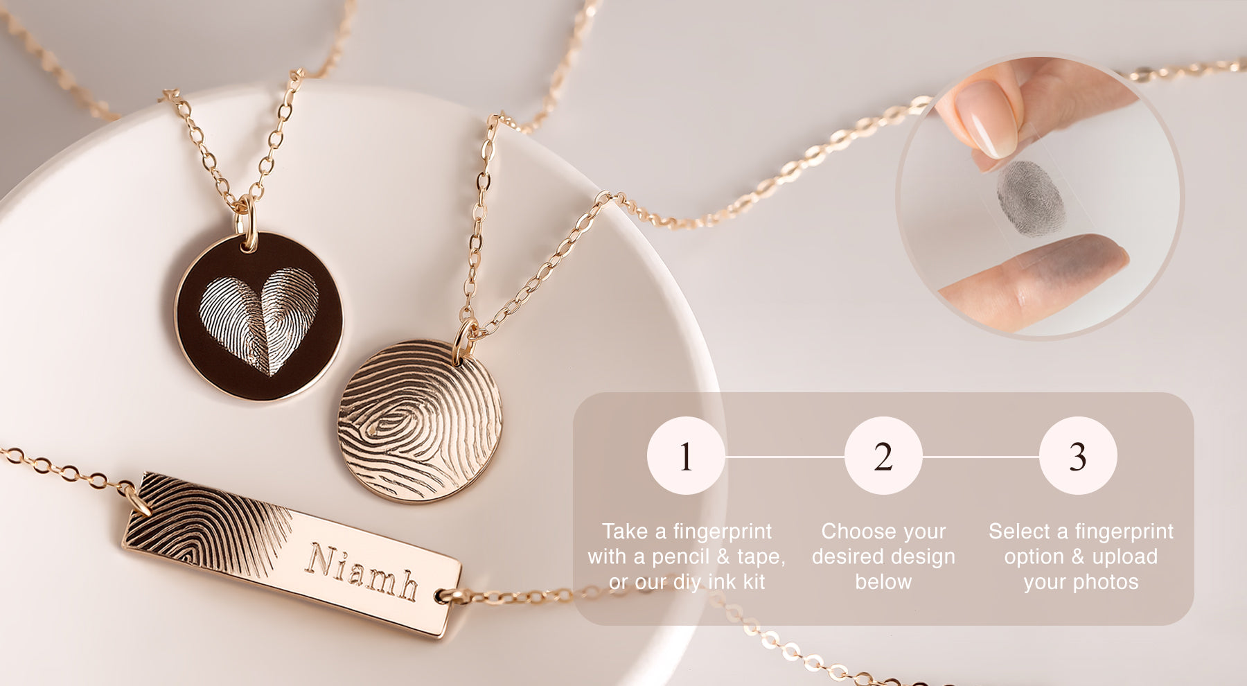 Cherish every touch with our Fingerprint Collection. A truly personal way to keep your loved ones close. Each piece is intricately engraved with the unique fingerprint of someone special, creating a timeless keepsake.